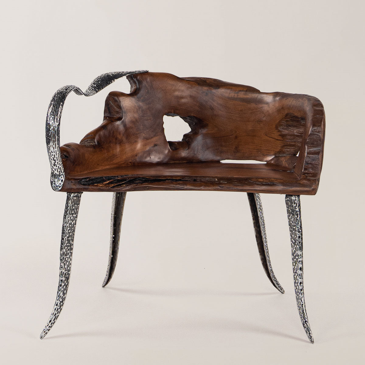 Teak wood with steel, Teakholz dunkel mit Edelstahl